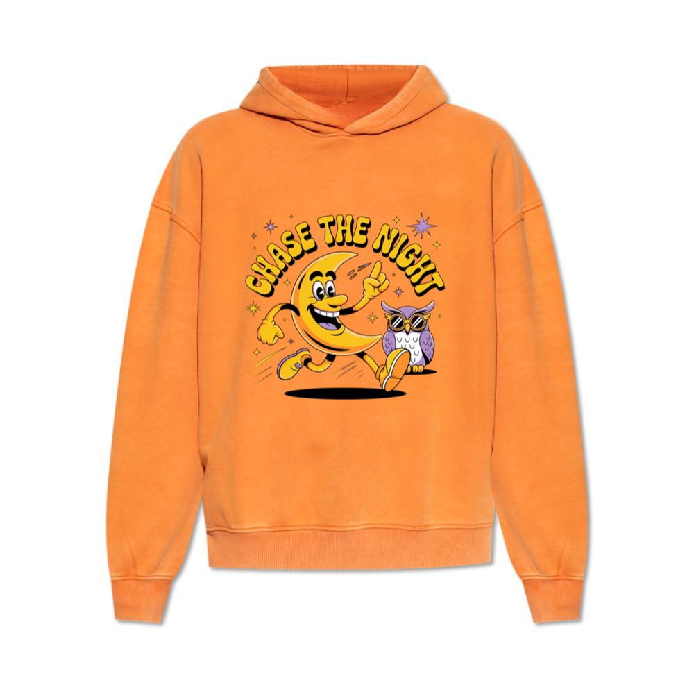 Chase The Night Cartoon Moon Running With Owl Hoodie