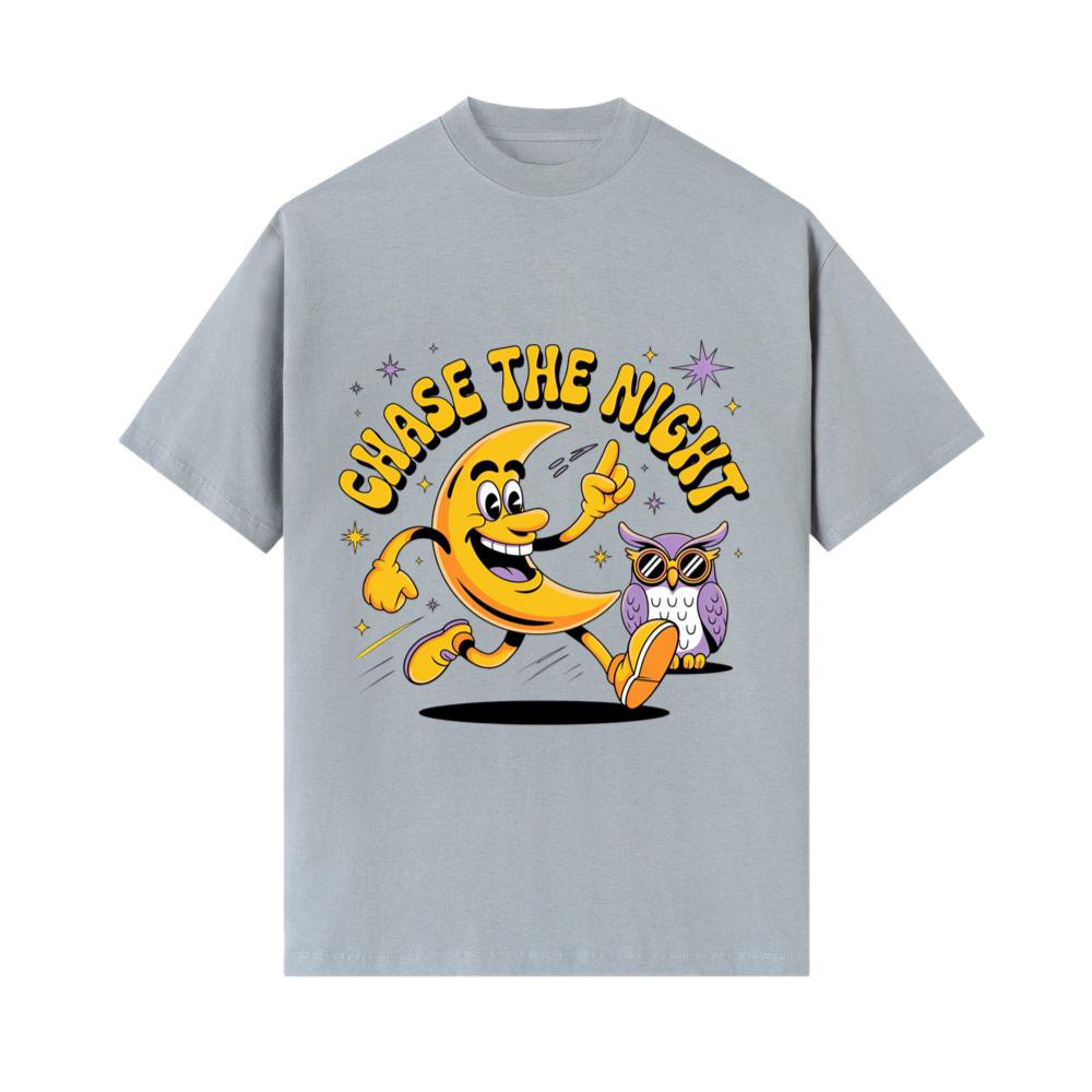 Chase The Night Cartoon Moon Running With Owl T-Shirts