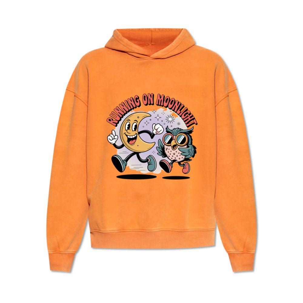 Running On Moonlight Cartoon Moon And Owl Retro Hoodie