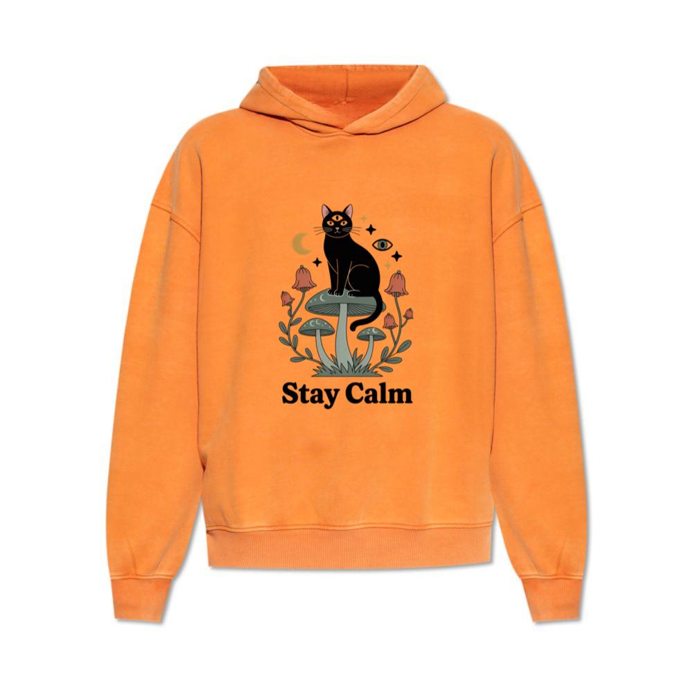 Stay Calm Black Cat Mystical Moon Graphic Hoodie